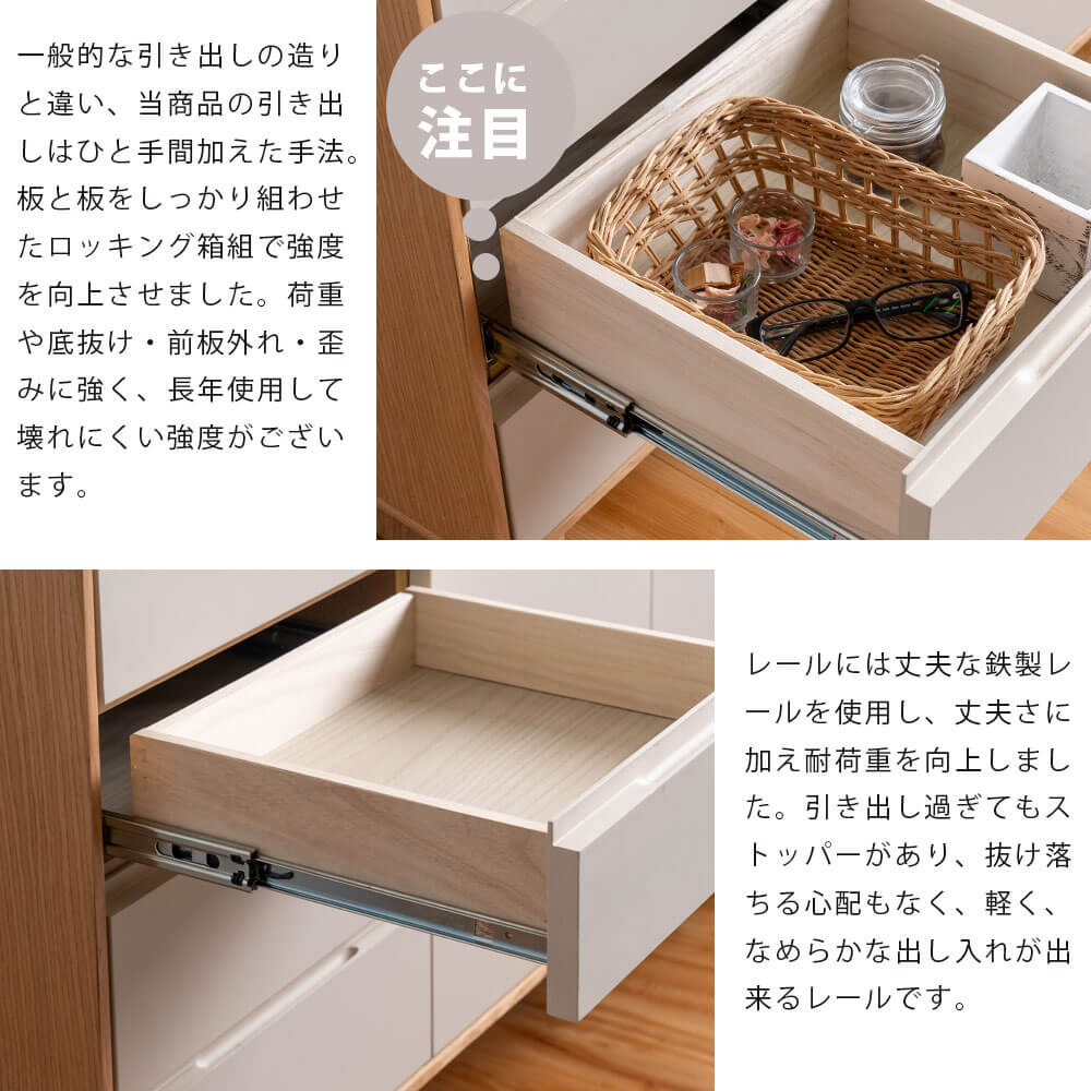 ・深さの異なる2種類(5.8cm/8.5cm)の引き出し(細かいものもすっきり収納)