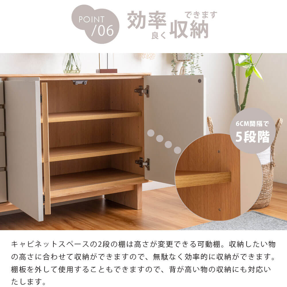 ・可動棚付きで収納の高さ調整も自由自在