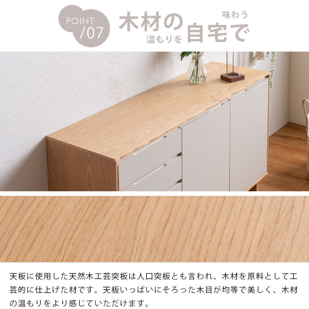リビングをすっきりと整える、シンプルで美しいサイドボード”パルム”。