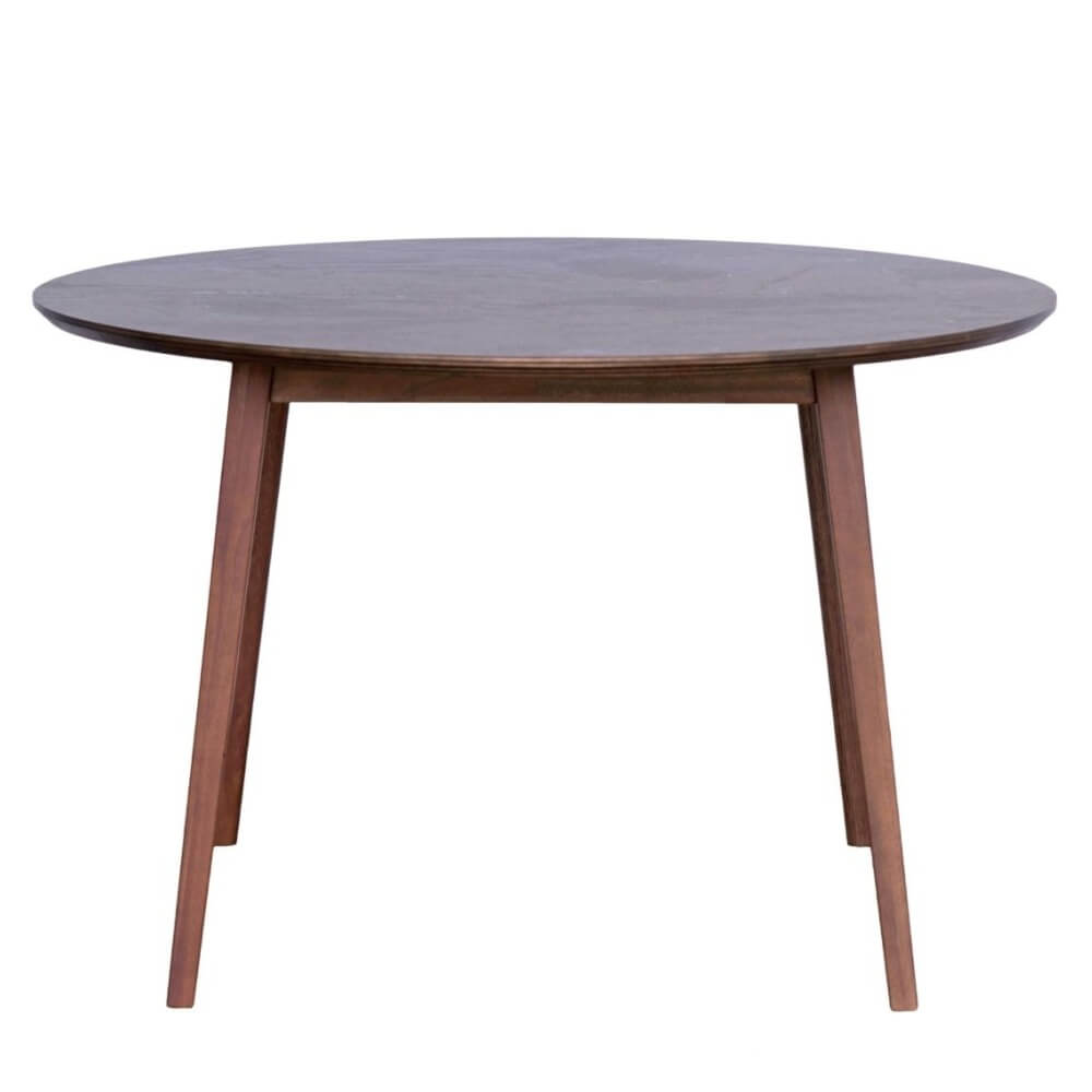 シンプルで洗練されたおしゃれなデザインにウォールナット材の温かみが加わり、丸テーブルを囲みながらダイニングやミーティングでなごやかなシーンを創出します。