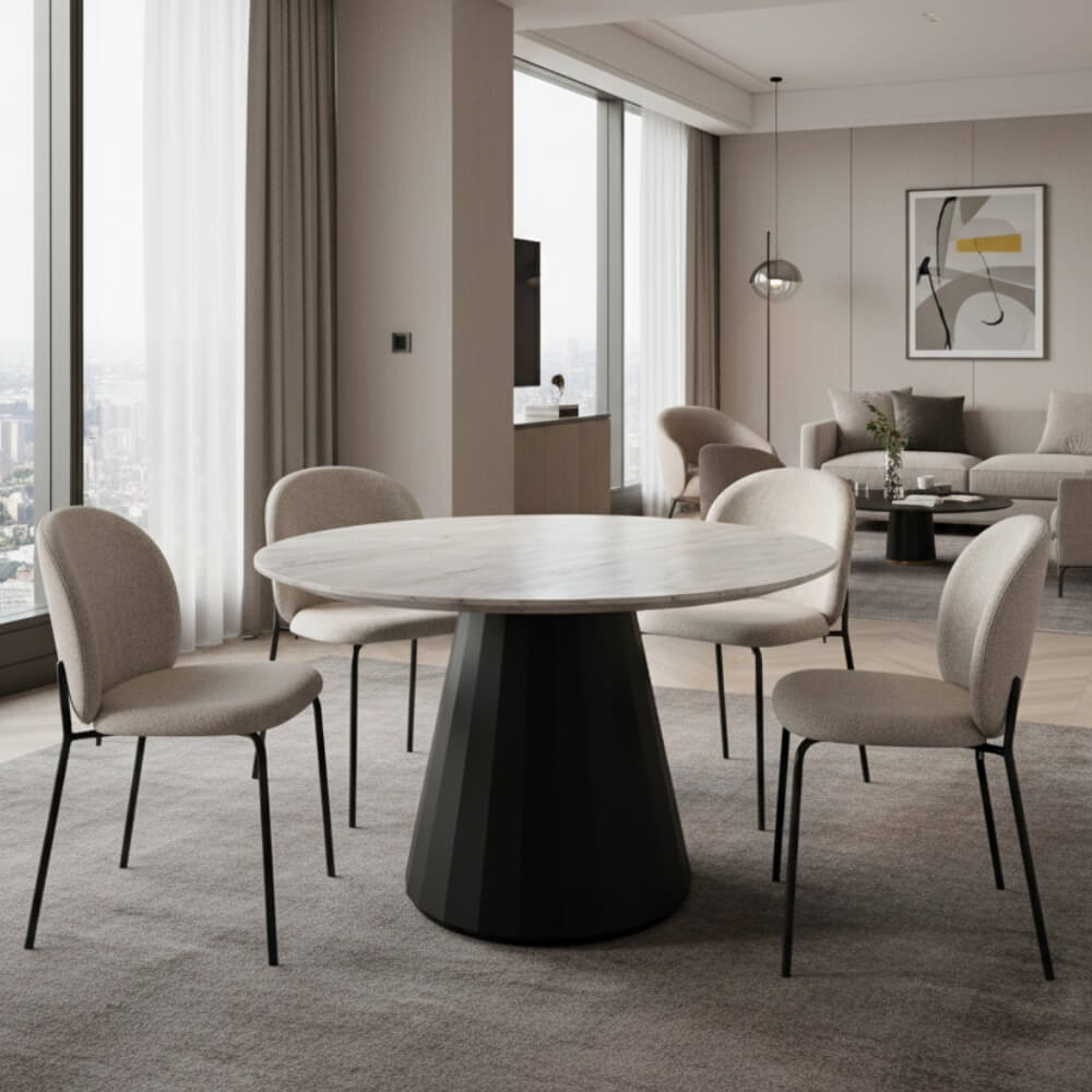 コンパクトサイズのセラミック円形ダイニングテーブル。