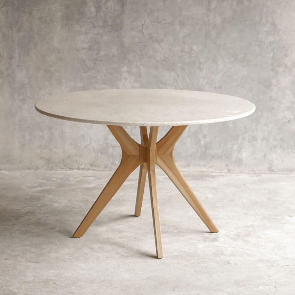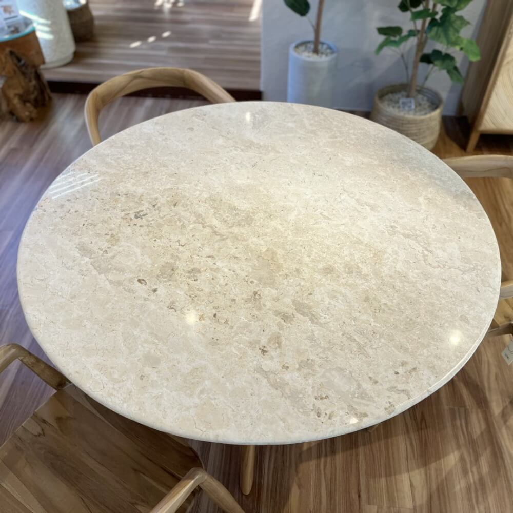 素材やシルエット、グレード感にまでこだわりぬいた円型ダイニングテーブル。